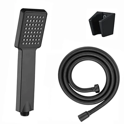 ENKI, EH027, Modern Square Shower Head and Hose Kit with Holder, Black