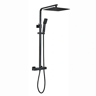 QUALITY- This shower set is premium quality, with a solid brass construction and matte black finish. It is designed in a way that if maintenance is required, the whole valve does not require re-plumbing. The built-in anti-scald device also means no more fluctuating water temperatures while showering. Minimum water pressure required is 0.5 bar, though min. of 1.0 bar is recommended for best performance. CONTEMPORARY DESIGN- This shower set is robust and graceful and will give a modern scandi inspired interior look to any bathroom. Ultra slim 300mm high pressure rainfall showerhead will provide a powerful shower. Thanks to anti-limescale silicone jets this shower head is also easy to clean. Shower valve - 1/2 inch hot/cold inlets with 150mm distance in between. SAFE TO USE- The two control and two outlet thermostatic shower valve is anti-scald allowing to keep you and your family safe. The smart thermostat valve will automatically turn off the shower head if the cold water supply fails. This valve is fitted with two individual controls, one to select the showers temperature and other to switch on/off/divert the water flow between shower heads FULL PACKAGE SHOWER SET: X1 Thermostatic square design shower mixer valve, X1 rigid riser rail, X1 300mm large shower head, X1 handheld showerhead, X1 hose, X1 bracket. Rainfall shower head creating a powerful shower head. 1 YEAR GUARANTEE- Although our shower sets are already trusted by thousands of customers we want to provide you with true peace of mind. That's why we offer a 1 year guarantee on our shower sets., Weight: 10.361726314 pounds, Manufacturer: ENKI