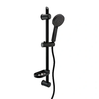 ENKI, ES019, Shower Slider Riser Rail Kit, includes Adjustable Slider, 3 setting Head, Hose, Soap Dish, Durable Black Finish