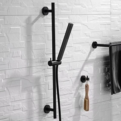 ENKI, ES022, Shower Slider Riser Rail Kit, includes Adjustable Slider, Stylish Pencil Head, Hose and Wall Elbow Outlet, Durable Black Finish