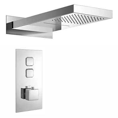 Solid brass construction, durable chrome finish Anti-scald thermostatic control Minimum 0.5 bar water pressure, 1.0 bar recommended for best performance Shower kit includes: concealed thermostatic shower valve, dual shower head waterfall and rainshower design 10 Year Guarantee, Manufacturer: ENKI
