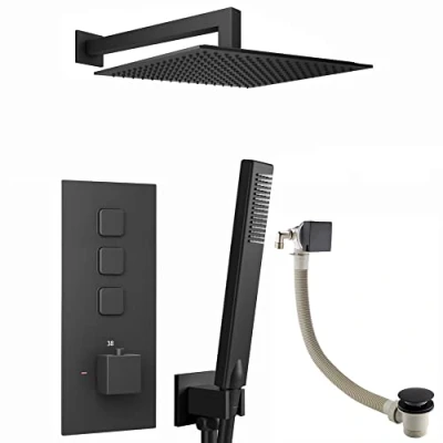 Solid brass construction, durable black finish Anti-scald thermostatic control Minimum 0.5 bar water pressure, 1.0 bar recommended for best performance Shower kit includes: concealed thermostatic shower valve, wall-mount large 300mm ultra slim high pressure shower head and arm, handset kit, and bath filler waste with overflow 10 Year Guarantee, Weight: 16.53466965 pounds, Manufacturer: ENKI