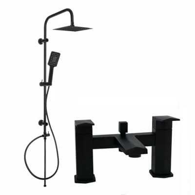 ENKI, Milly, BBT0175, Matte Black, Bath Shower Mixer Taps with Dual Rigid Riser Rail, Contemporary Geo Inspired Handle, Solid Brass, Easy Clean, Modern Design, to Install, 10 Year Guarantee