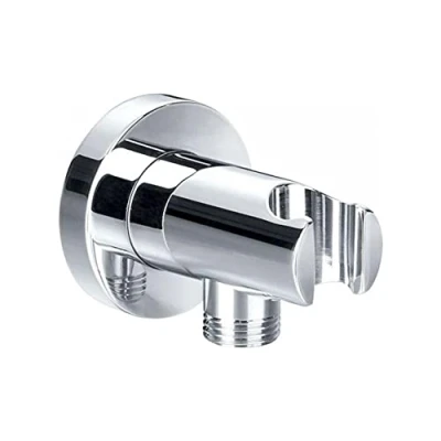 ENKI, O02, Shower Outlet Elbow with Holder, Brass Chrome Hand Wall Valve Connector Bracket, Round Design,
