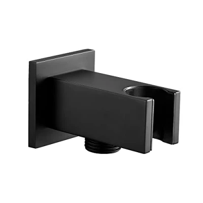 ENKI, O07, Square Shower Outlet Elbow with Holder, Brass Black Hand Wall Valve Connector Bracket,