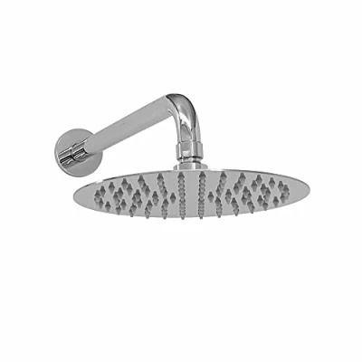 ENKI, RA054, Contemporary Wall Fixed Round Ultra Slim Stainless Steel Shower Head 8" with Arm Chrome