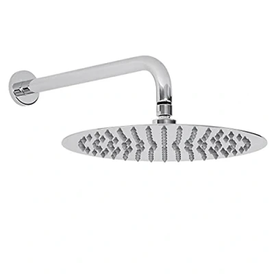 ENKI, RA067, Contemporary Wall Fixed Round Ultra Slim Stainless Steel Shower Head 12" with Arm Chrome