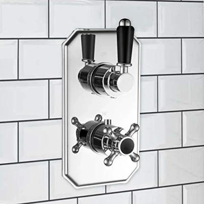 ENKI, Regent, TSV032, Black Chrome Twin Concealed Thermostatic Mixer Tap Shower Outle Valve for Bathrooms, Traditional Victorian Style