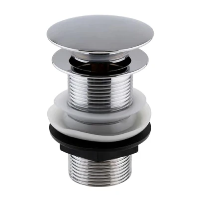 ENKI, W02, Chrome, Unslotted, Standard 1.1/4" Connection Pop Up Basin Waste Sink Plug, Push Button Click Clack, Allows Water to Drain Away, Durable Finish, Modern Bathroom Accessoires