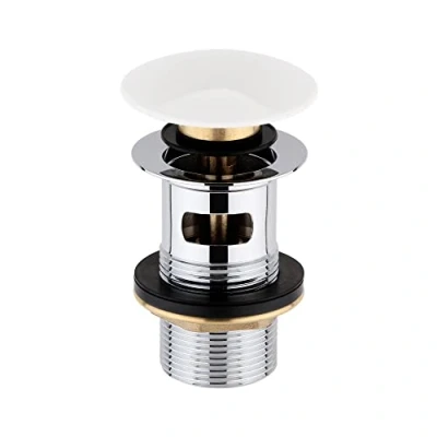 ENKI, W60, Pop Up Basin Waste with Ceramic Cap Round Slotted, White