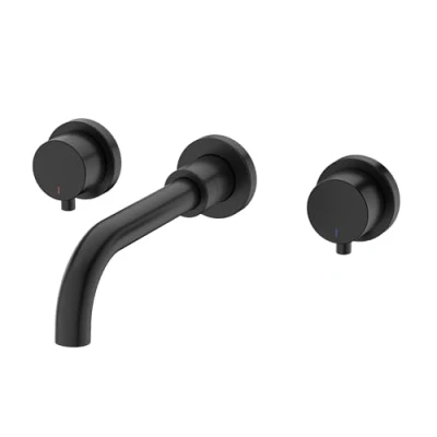 ENKI, Zara, BT1805, Matt Black, Wall Mounted Basin Mixer Tap, Twin Levers, 3 Hole, Solid Brass, Easy Clean, Modern Design, to Install, 1 Year Guarantee