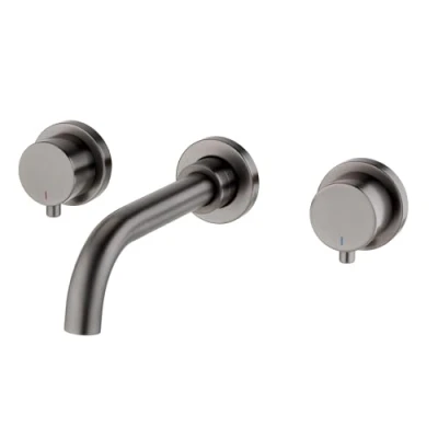 ENKI, Zara, BT1905, Gunmetal Grey, Wall Mounted Basin Mixer Tap, Twin Levers, 3 Hole, Solid Brass, Easy Clean, Modern Design, to Install, 1 Year Guarantee