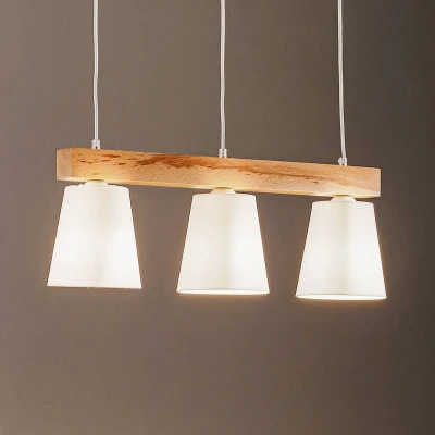 Aldonn pendant light: Scandinavian design meets natural uniqueness The Aldonn pendant light with textile shade and 3 bulbs combines modern and Scandinavian design with natural materials such as wood, metal and fabric. This light is not only a functional lighting element, but also a stylish decorative piece for the living room, kitchen or dining room. The light wood look and white fabric shade create a harmonious and inviting atmosphere that blends seamlessly into various interior styles. The uniqueness of each light is particularly noteworthy, as differences in colour and structure are natural characteristics of the wood used. This special feature makes each Aldonn pendant light unique. The light is also dimmable when used with an external dimmer, allowing for flexible adjustment of the light intensity. Manufactured in Europe, the Aldonn pendant light stands for quality and timeless design.