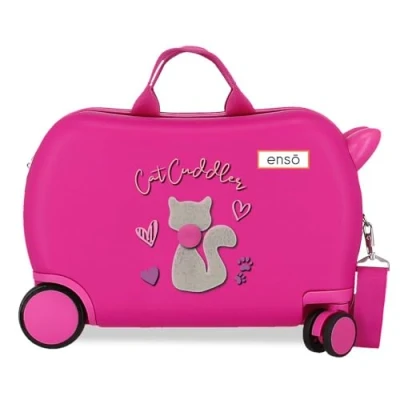Enso Cat Cuddler Children's Suitcase Pink 45x31x20cm Hard ABS 24.6L 1.8kg 4 Wheels Hand Luggage, Pink,