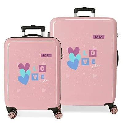 Enso Love Vibes Medium Suitcase Pink 48 x 68 26 cm Hard Plastic Side Combination Lock 70L 3kg 4 Wheels, Pink, Set