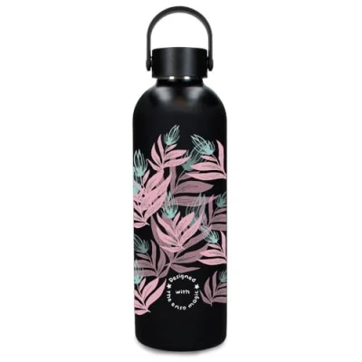 Enso Magical Fleur Leaves Stainless Steel Bottle, Black, Holds 500 ml and Measures 7 x 23 cm