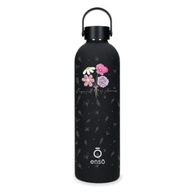 Enso Magical Stainless Steel Bottle Black 7x26.5x7cm Steel, Black/White, One Size,