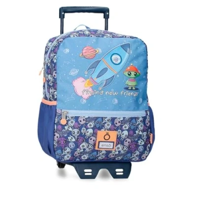 Backpack 27 cm x 33 cm x 11 cm made of polyester. Large main compartment. Includes a front pocket and two side pockets, ideal for carrying water bottle, lunch or small school accessories always at hand. Double zipper puller for convenience, making opening and closing easier for easy access to your belongings. Wide, adjustable straps fit perfectly on the back, ensuring maximum comfort on the move. Includes integrated trolley, ideal for easy movement and greater stability. Magic Fix system for optimal attachment between backpack and trolley.