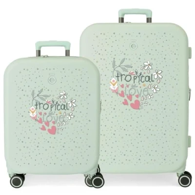 Enso Tropical Love Suitcase Set Green 55/70 cm Rigid ABS TSA Lock Integrated 116L 7.5 kg 4 Wheels Double Luggage Hand Luggage, Green,