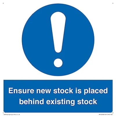 Ensure New Stock Is Placed Behind Existing Sign 200x200mm S20