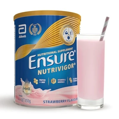 Ensure NutriVigor Nutritional Shake 850g Strawberry Flavour Support Strength, Energy and Immunity Food supplement With Protein, Vitamins Minerals Vitamin D, C B