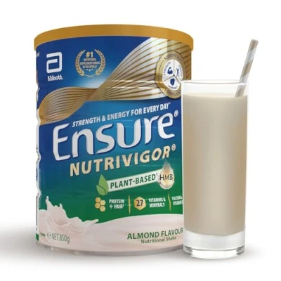 Ensure NutriVigor Nutritional Shake Almond Flavour 850 g Food Supplement with Protein, HMB and 27 Vitamins Minerals Supports Strength, Energy Immunity Vitamin D, C B