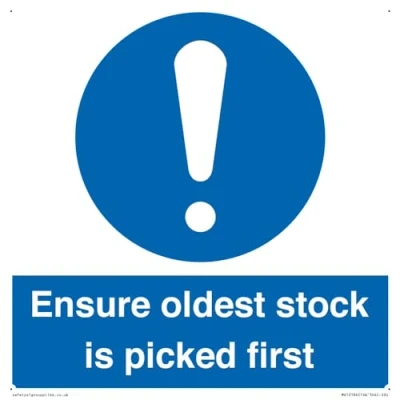 Ensure Oldest Stock Is Picked First Sign 200x200mm S20