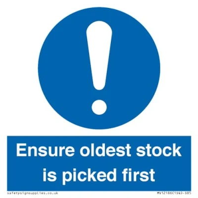 Ensure Oldest Stock Is Picked First Sign 85x85mm S85