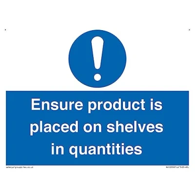 Ensure Product Is Placed on Shelves in Quantities Sign 200x150mm A5L