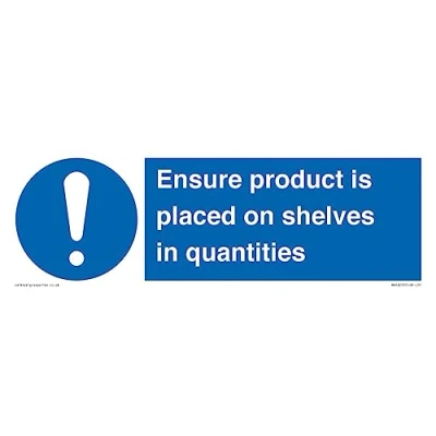 Ensure Product Is Placed on Shelves in Quantities Sign 300x100mm L31