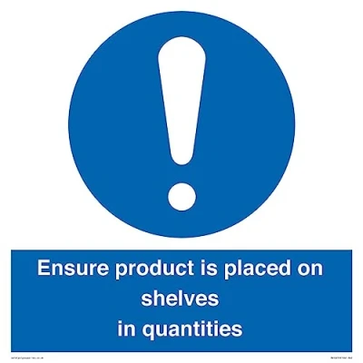 Ensure Product Is Placed on Shelves in Quantities Sign 400x400mm S40
