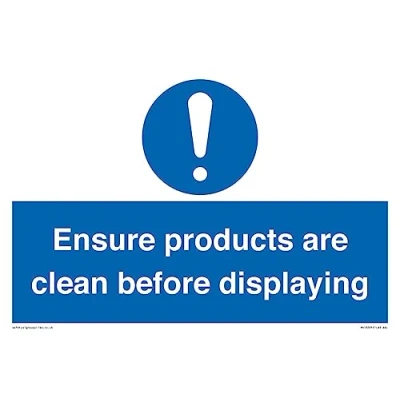 Ensure Products Are Clean Before Displaying Sign 300x200mm A4L