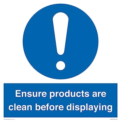 Ensure Products Are Clean Before Displaying Sign 400x400mm S40