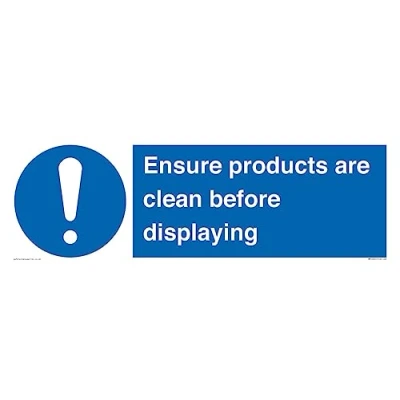 Ensure Products Are Clean Before Displaying Sign 600x200mm L62