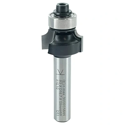 Shank (S) 8 mm, Shank length (SL) 32 mm Diameter (D) 18,7 mm, Cutting width (NL) 9,5 mm Radius (R) 3 mm, with Ball Bearing Flutes (Z) 2, Tungsten Carbide (TC) Two flute rounding over cutter with an exchangeable bearing with Ø 12,7 mm. For precise and clean rounded edges.