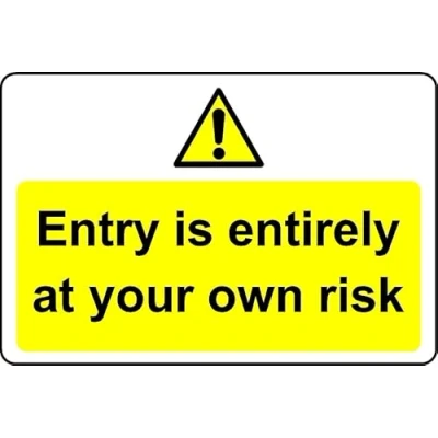 Entry is Entirely at Your own Risk Safety Sign Self Adhesive Sticker (200mm x 150mm)
