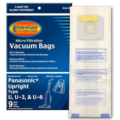 EnviroCare Replacement Micro Filtration Vacuum Cleaner Dust Bags made to fit Panasonic Types 3, U-6 9 pack These bags will fit all Panasonic Upright Models including MC-/MC-V5100, 5200, 5300, 5500, 6200, 6300, 6600, 6700, 6800, 6900OEM, Panasonic Jet-Flo 240. Designed to fit all Kenmore Upright Vacuums Models, Weight: 0.04 pounds, Manufacturer: Envirocare