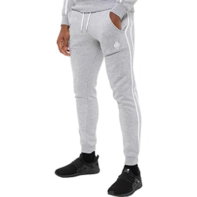 Enzo EZJG582T Mens Joggers Striped Tracksuit Jogging Trousers Casual Sport Fitness Gym Fleece Sweatpants (Grey, S, s)