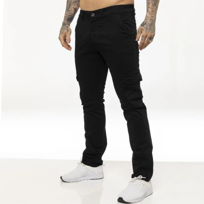 Enzo Jeans Mens Cargo Combat Trousers Chinos Slim Fit Cotton Stretch Work Pants (34W / 32L, Black)