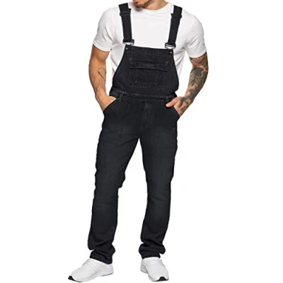 Enzo Men's EZD390 VEN Denim Dungarees Overalls, Black, 30