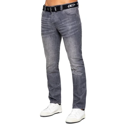 Enzo Mens Denim Straight Fit Jeans Grey Cotton Size 32W/30L