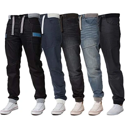 Enzo Mens Ribbed Cuffed Jeans EZ367 Black/Blue 40R