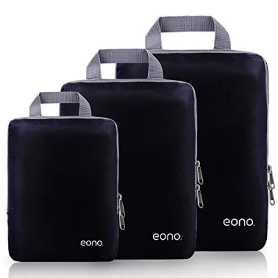 Eono Compression Packing Cubes, Luggage Organiser Set, Extensible Suitcase Organiser, Organisers for Suitcases, Cubes Travel or Home Storage Black, 3 Set