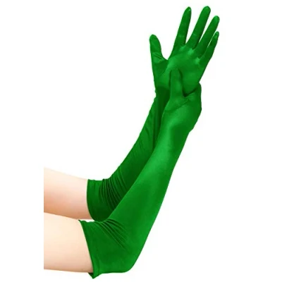 EORUBE Long Opera 1920s Satin Gloves for Women Elbow Length Party Costume (Smooth 20.5" Green)