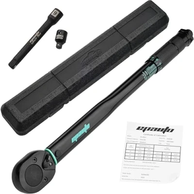 EPAUTO 1/2 inch Drive Click Torque Wrench, 10 150 ft./lb., 13.6 203.5 N/m, Black