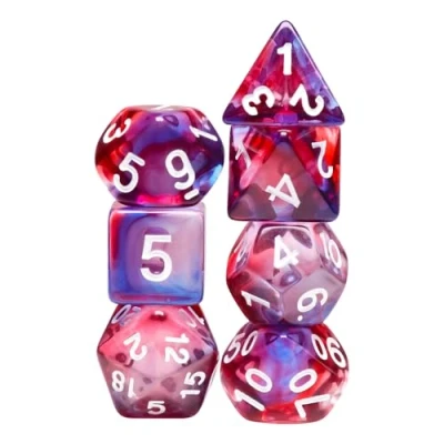 Set of dice contained in their plastic box. Coloured dice set red and purple. Set of dice in various shapes. Set of dice D2, D4, D6, D8, D10, D12 and D20. This set of dice will brighten up your board game evenings., Manufacturer: Ludistri