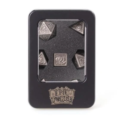 - 1 x D4 - 1 x D6 - 1 x D8 - 1 x D10 (unit) - 1 x D10 (ten) - 1 x D12 - 1 x D20 Size D6 for reference: 14mm Set of 7 metal dice in a metal box Role Play Accessory Dice for Board Games and Role Games, Manufacturer: Ludistri