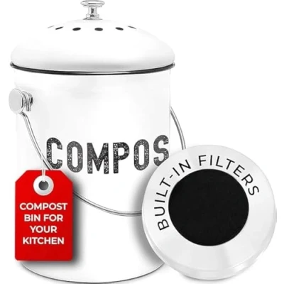 EPICA Compost Bin 1.3 Gallon Includes Charcoal Filter (white)