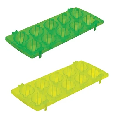 This set of 2 Ice and Slice Trays allow a half slice of lemon or lime to sit in the mould and then add water for ice, this allows the ice and slice to freeze together so that you can have both for a cool and refreshing drink.This is a great way also of flavouring and cooling water for increasing your daily water intake.