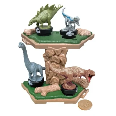 From EPOCH Games! Balancing Game with Jurassic World themed stage and dinosaur pieces! Jurassic World Island Quake is a simple balancing game. Toss the medal and move the figure or the branch piece onto the stage. Be carefull not to topple off the pieces from the stage!4 Jurassic World Dinosaur figures are included.